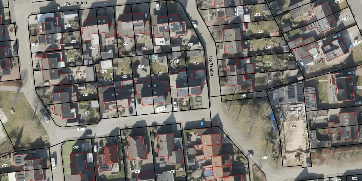 Het perceel waarop De Traden 21 staat heeft een oppervlakte van 330 m². Dit is een groot perceel. De perceeloppervlakte wordt geregistreerd door het Kadaster. Gedetailleerde informatie over de maten van dit perceel kunt u vinden in het rapport Kadastrale kaart met maatvoering van De Traden 21.