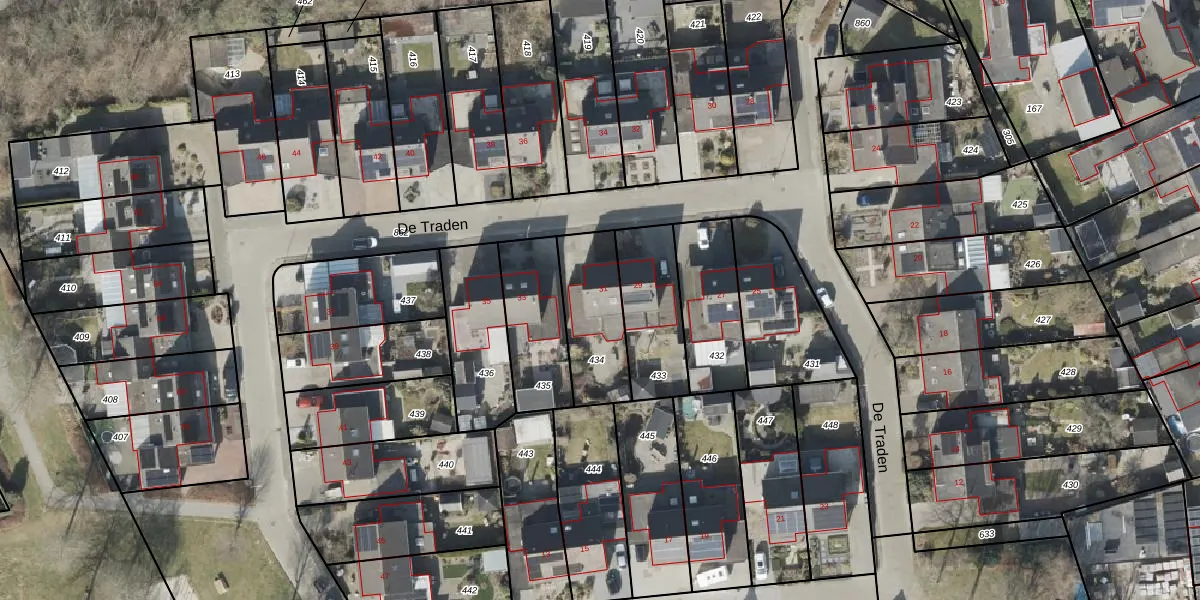 Gebruik de zoekbalk of klik op een perceel voor informatie over de adressen binnen dit perceel.