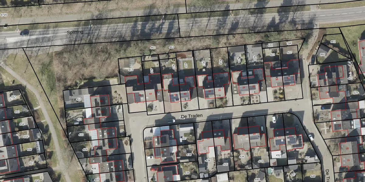 Het perceel waarop De Traden 40 staat heeft een oppervlakte van 309 m². Dit is een groot perceel. De perceeloppervlakte wordt geregistreerd door het Kadaster. Gedetailleerde informatie over de maten van dit perceel kunt u vinden in het rapport Kadastrale kaart met maatvoering van De Traden 40.