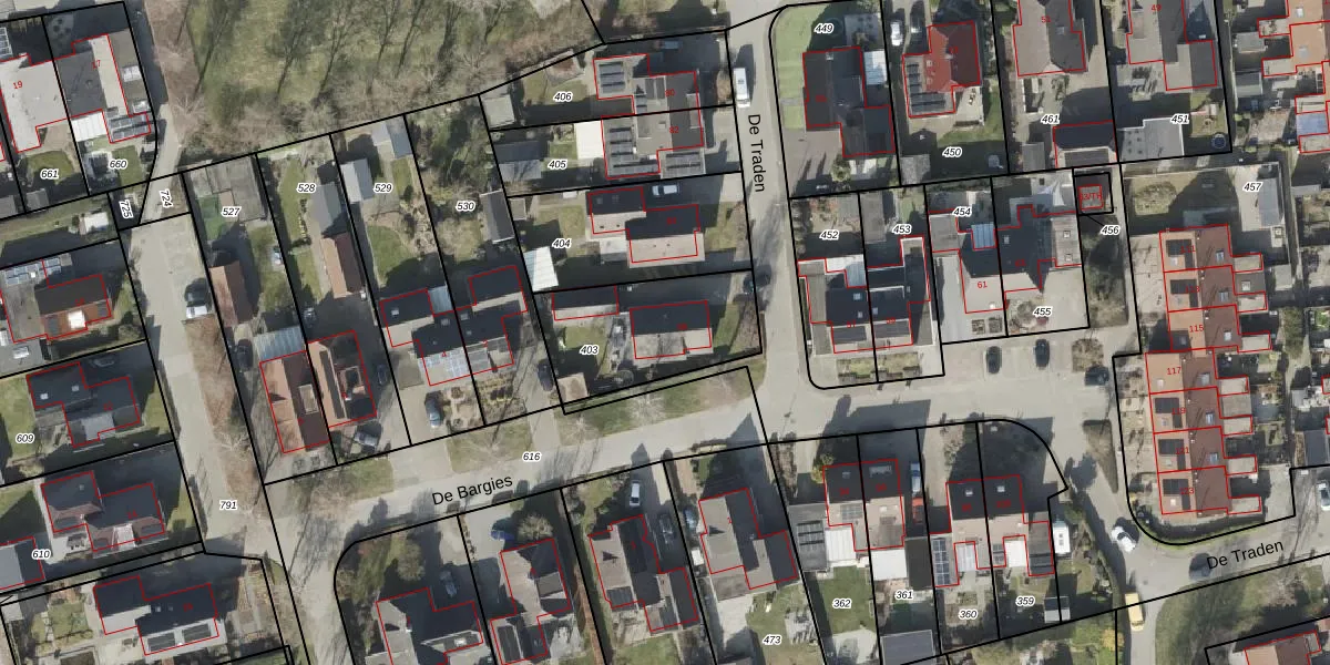 Het perceel waarop De Traden 86 staat heeft een oppervlakte van 485 m². Dit is een groot perceel. De perceeloppervlakte wordt geregistreerd door het Kadaster. Gedetailleerde informatie over de maten van dit perceel kunt u vinden in het rapport Kadastrale kaart met maatvoering van De Traden 86.