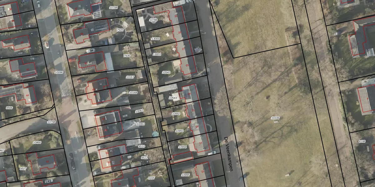 De Veenkampen 23 is gelegen op kadastraal perceel EMN00C10543. Deze kadastrale aanduiding is uniek en wordt gebruikt door het Kadaster om eigendomsrechten en andere zakelijke rechten vast te leggen. Het perceel maakt onderdeel uit van de kadastrale gemeente Emmen.