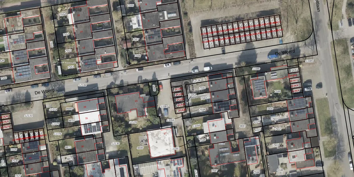 Gebruik de zoekbalk of klik op een perceel voor informatie over de adressen binnen dit perceel.