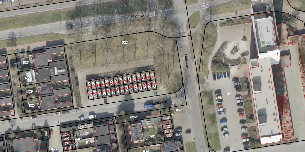 Gebruik de zoekbalk of klik op een perceel voor informatie over de adressen binnen dit perceel.