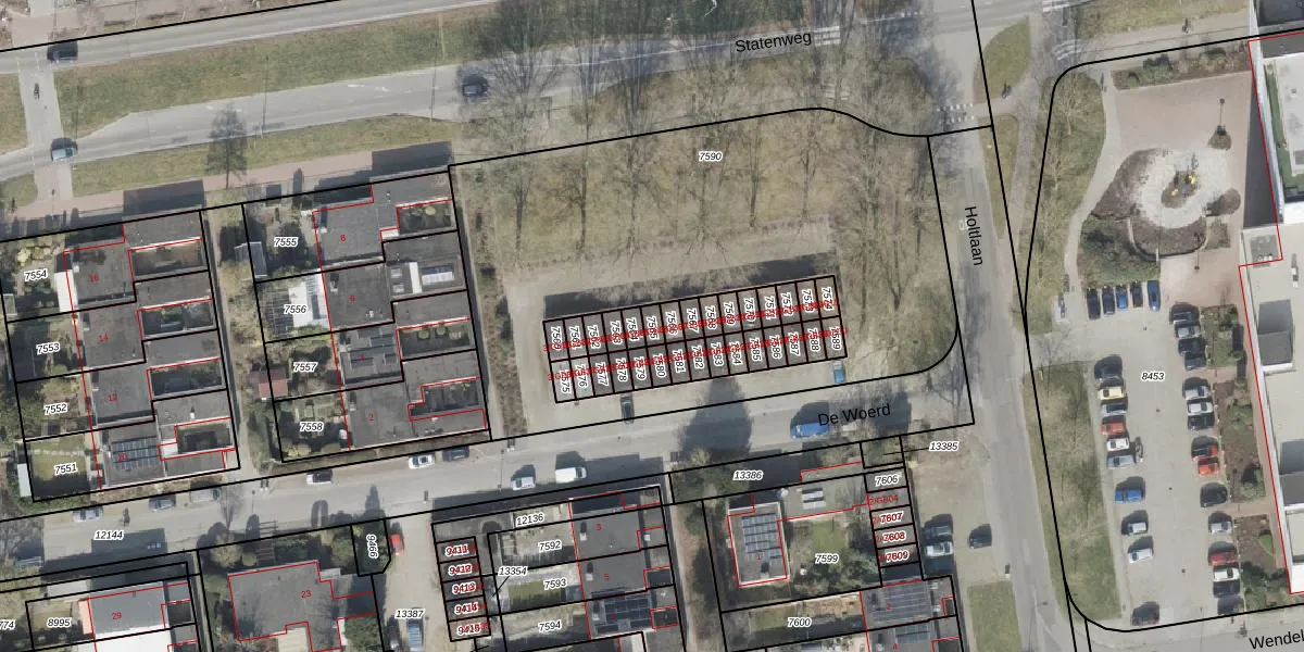 Gebruik de zoekbalk of klik op een perceel voor informatie over de adressen binnen dit perceel.