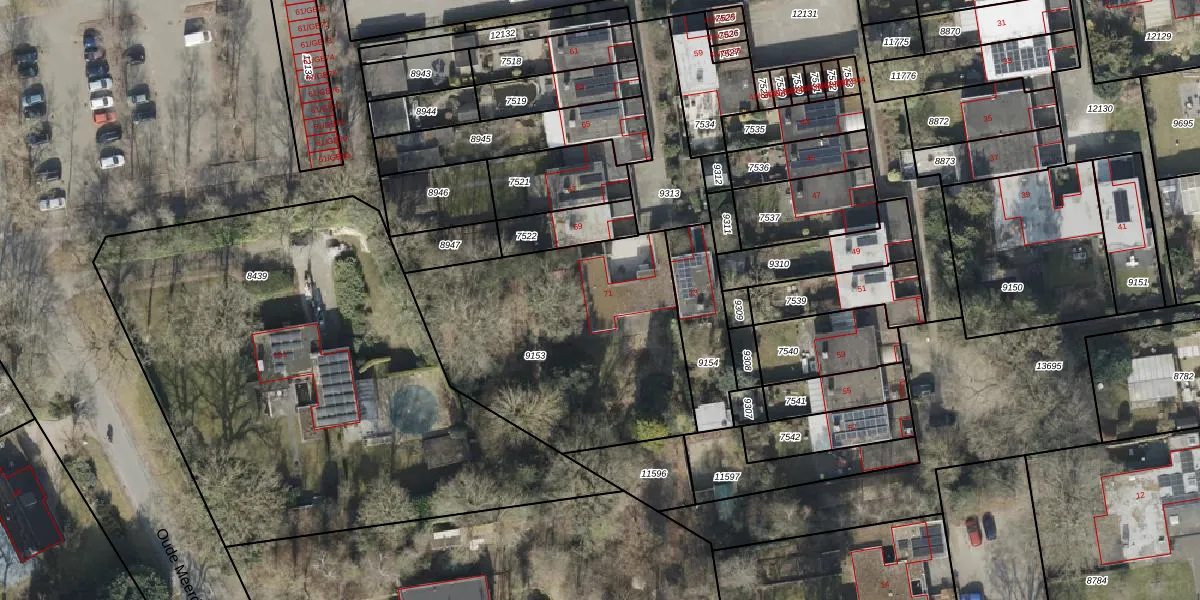 Gebruik de zoekbalk of klik op een perceel voor informatie over de adressen binnen dit perceel.