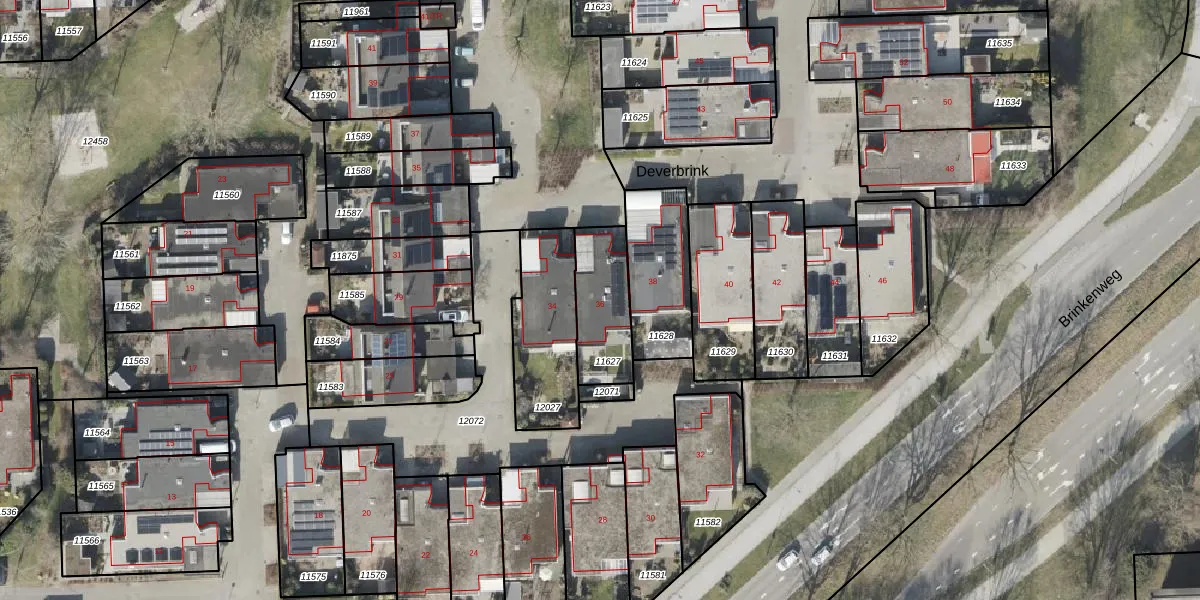 Gebruik de zoekbalk of klik op een perceel voor informatie over de adressen binnen dit perceel.