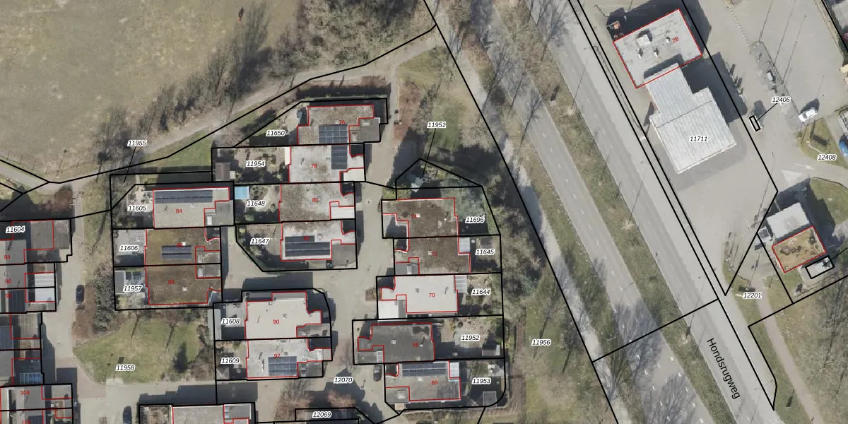 Gebruik de zoekbalk of klik op een perceel voor informatie over de adressen binnen dit perceel.
