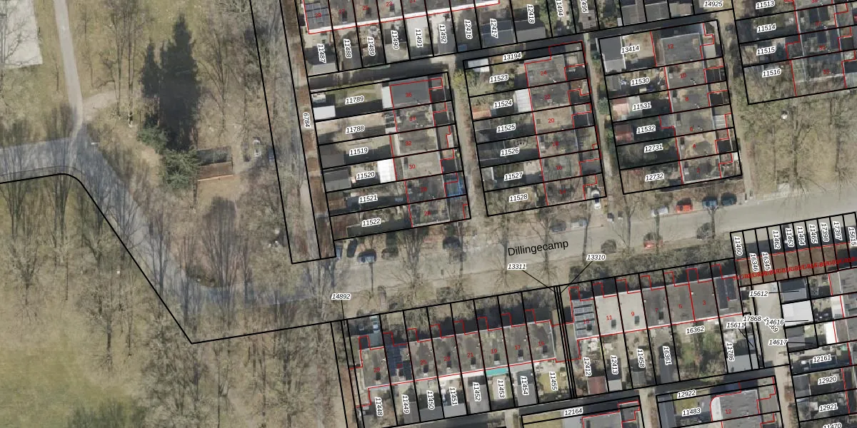 Het perceel waarop Dillingecamp 26 staat heeft een oppervlakte van 185 m². Dit is een middelgroot perceel. De perceeloppervlakte wordt geregistreerd door het Kadaster. Gedetailleerde informatie over de maten van dit perceel kunt u vinden in het rapport Kadastrale kaart met maatvoering van Dillingecamp 26.