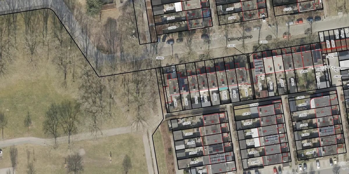 Het perceel waarop Dillingecamp 29 staat heeft een oppervlakte van 203 m². Dit is een middelgroot perceel. De perceeloppervlakte wordt geregistreerd door het Kadaster. Gedetailleerde informatie over de maten van dit perceel kunt u vinden in het rapport Kadastrale kaart met maatvoering van Dillingecamp 29.