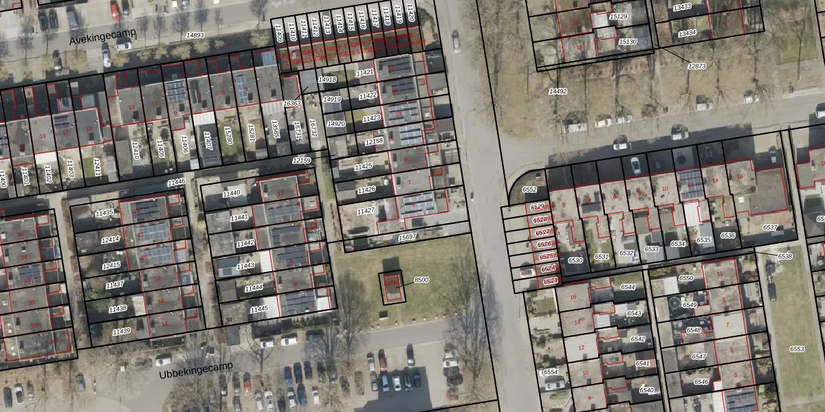 Gebruik de zoekbalk of klik op een perceel voor informatie over de adressen binnen dit perceel.