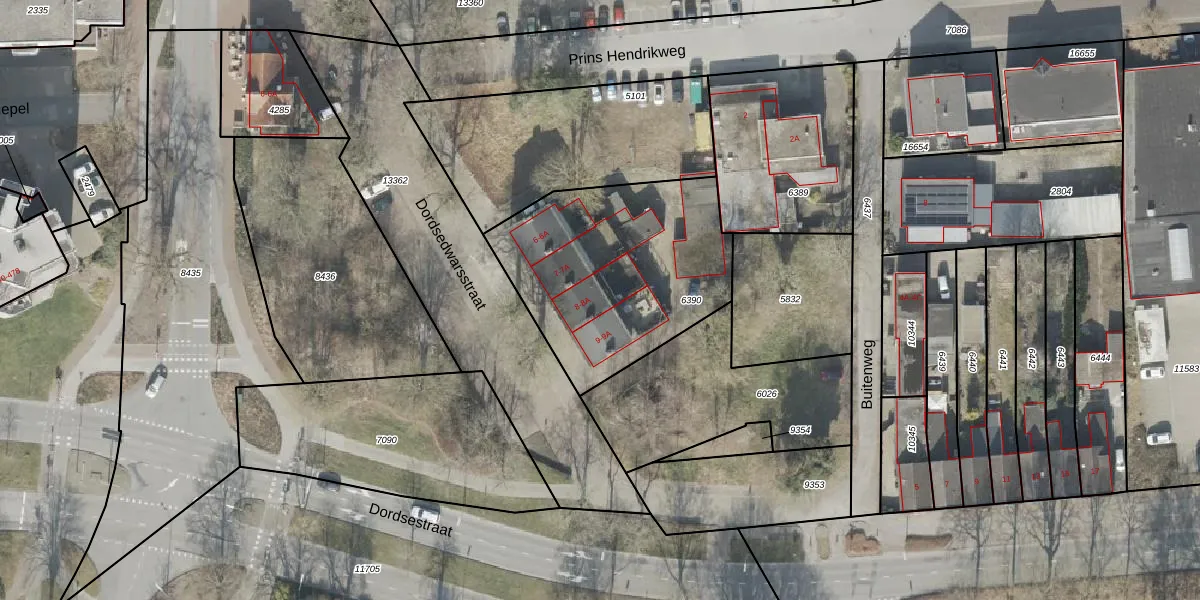 Het perceel waarop Dordsedwarsstraat 8 staat heeft een oppervlakte van 979 m². Dit is een groot perceel. De perceeloppervlakte wordt geregistreerd door het Kadaster. Gedetailleerde informatie over de maten van dit perceel kunt u vinden in het rapport Kadastrale kaart met maatvoering van Dordsedwarsstraat 8.