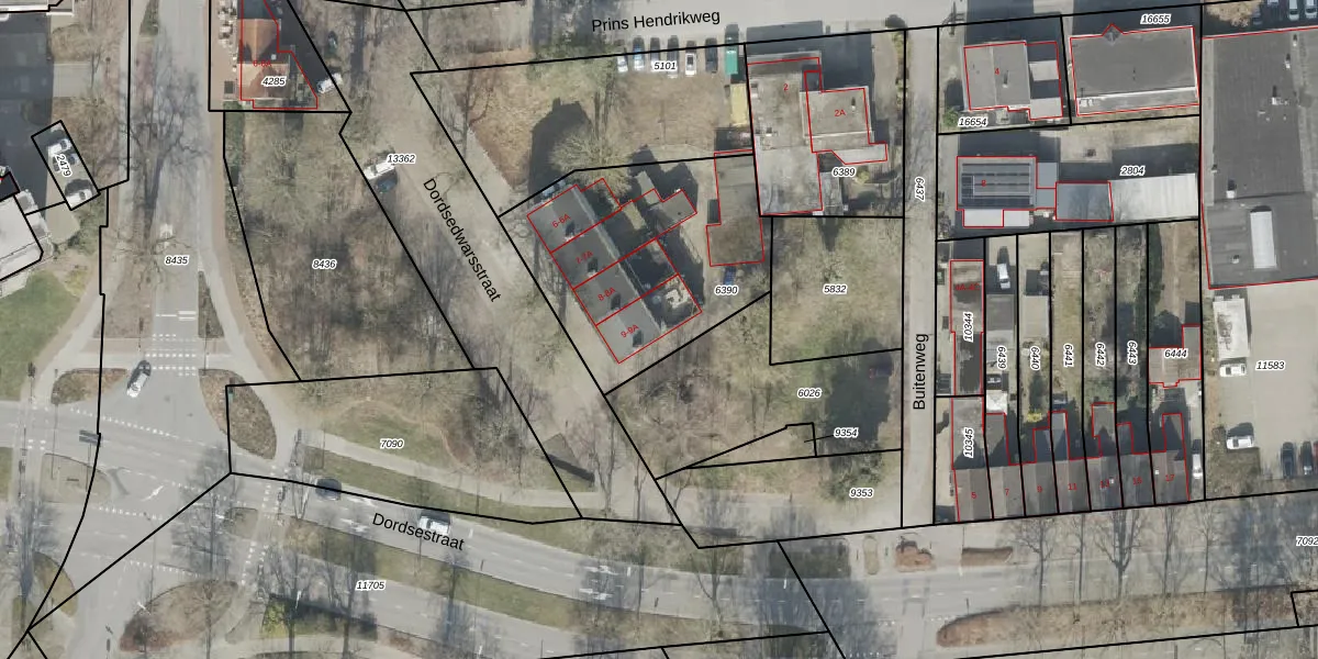 Het perceel waarop Dordsedwarsstraat 9 staat heeft een oppervlakte van 979 m². Dit is een groot perceel. De perceeloppervlakte wordt geregistreerd door het Kadaster. Gedetailleerde informatie over de maten van dit perceel kunt u vinden in het rapport Kadastrale kaart met maatvoering van Dordsedwarsstraat 9.
