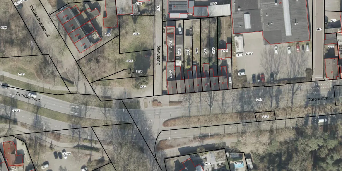 Het perceel waarop Dordsestraat 5 staat heeft een oppervlakte van 152 m². Dit is een middelgroot perceel. De perceeloppervlakte wordt geregistreerd door het Kadaster. Gedetailleerde informatie over de maten van dit perceel kunt u vinden in het rapport Kadastrale kaart met maatvoering van Dordsestraat 5.