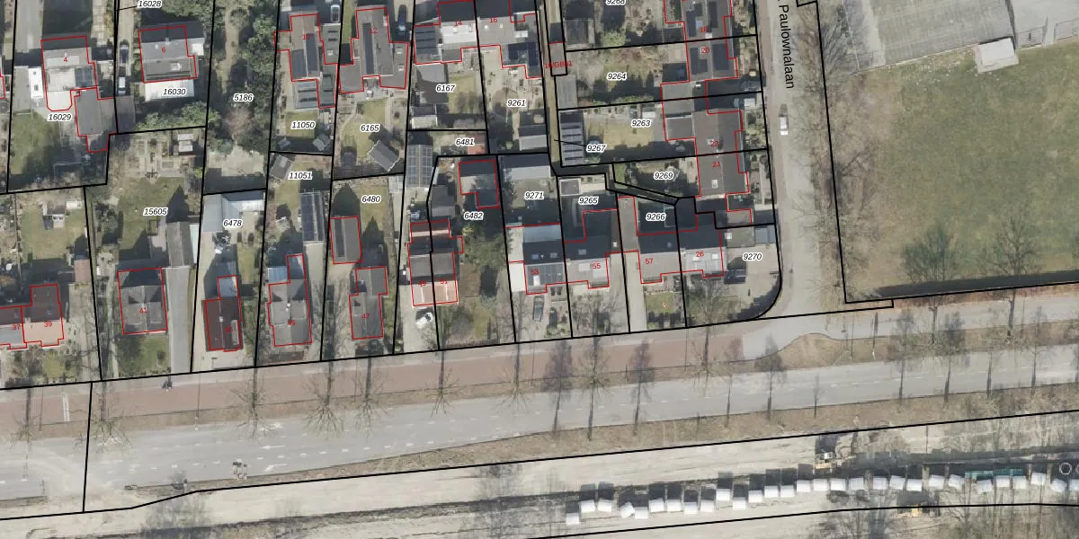 Gebruik de zoekbalk of klik op een perceel voor informatie over de adressen binnen dit perceel.
