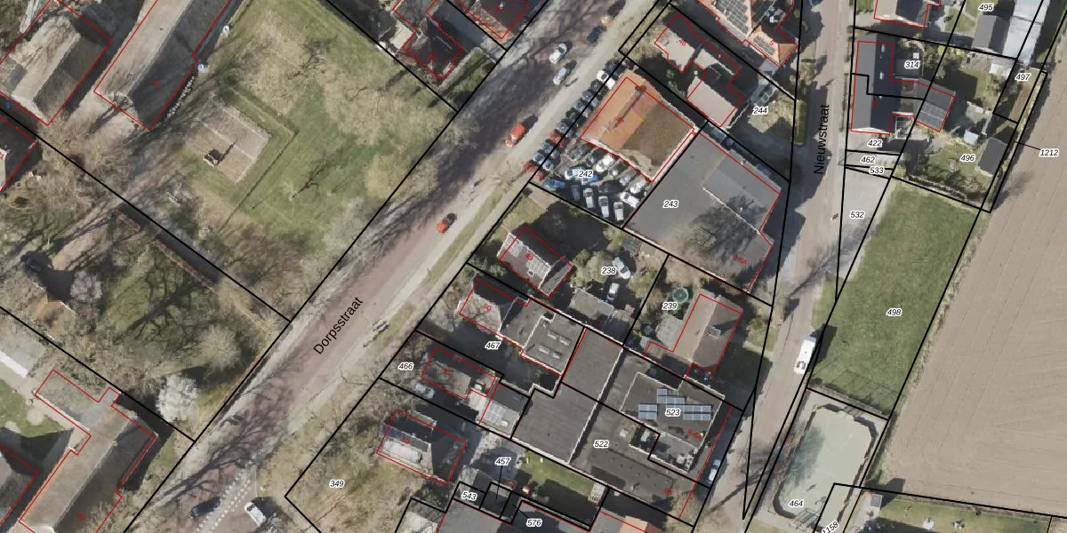 Het perceel waarop Dorpsstraat 49 staat heeft een oppervlakte van 608 m². Dit is een groot perceel. De perceeloppervlakte wordt geregistreerd door het Kadaster. Gedetailleerde informatie over de maten van dit perceel kunt u vinden in het rapport Kadastrale kaart met maatvoering van Dorpsstraat 49.