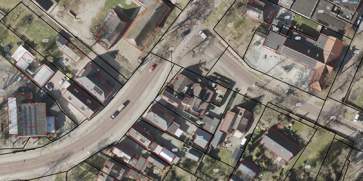 Gebruik de zoekbalk of klik op een perceel voor informatie over de adressen binnen dit perceel.