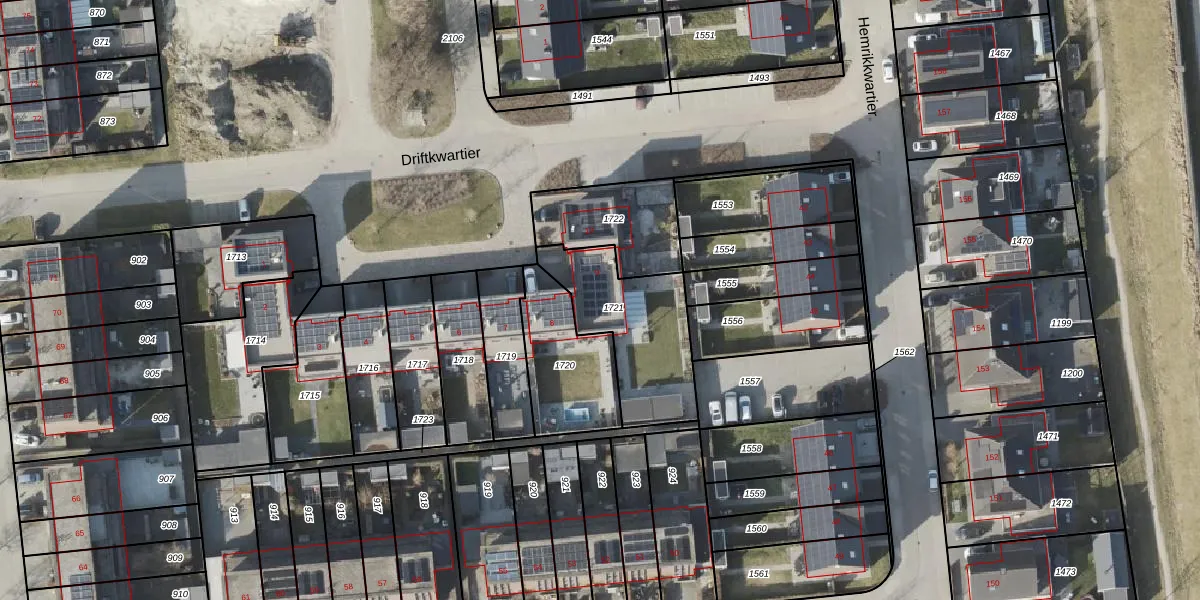 Het perceel waarop Driftkwartier 9 staat heeft een oppervlakte van 443 m². Dit is een groot perceel. De perceeloppervlakte wordt geregistreerd door het Kadaster. Gedetailleerde informatie over de maten van dit perceel kunt u vinden in het rapport Kadastrale kaart met maatvoering van Driftkwartier 9.