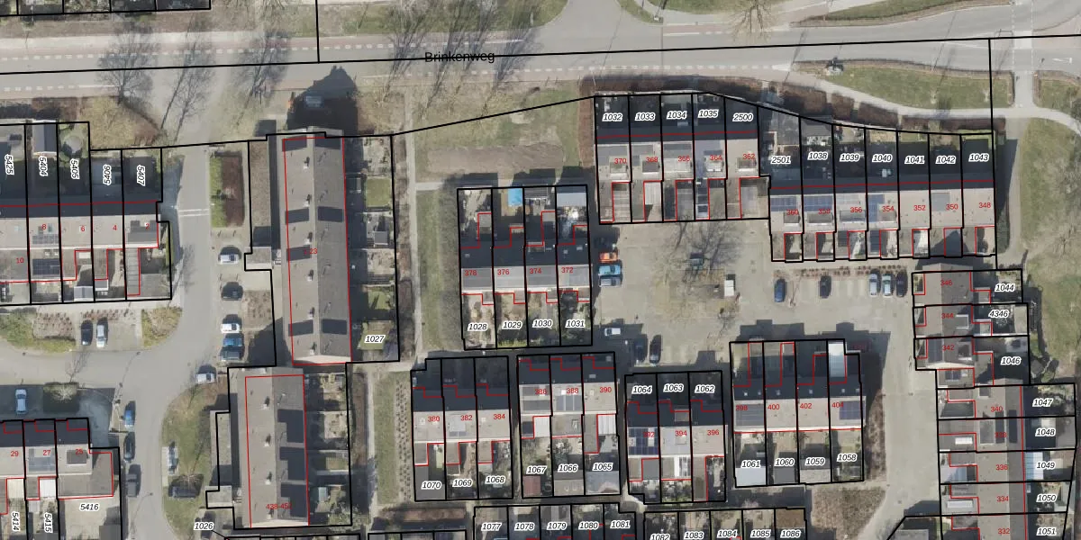 Gebruik de zoekbalk of klik op een perceel voor informatie over de adressen binnen dit perceel.