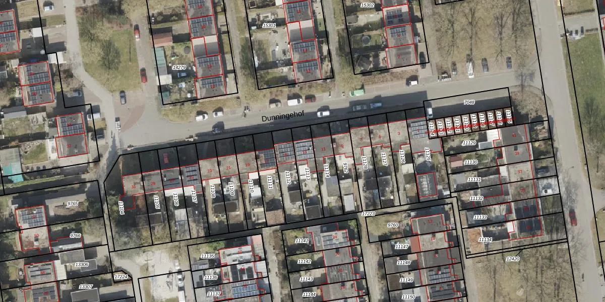 Het perceel waarop Dunningehof 13 staat heeft een oppervlakte van 199 m². Dit is een middelgroot perceel. De perceeloppervlakte wordt geregistreerd door het Kadaster. Gedetailleerde informatie over de maten van dit perceel kunt u vinden in het rapport Kadastrale kaart met maatvoering van Dunningehof 13.