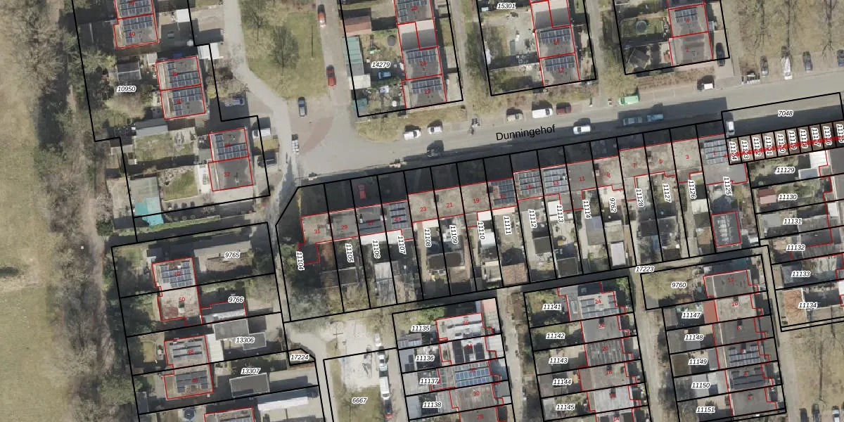Het perceel waarop Dunningehof 23 staat heeft een oppervlakte van 199 m². Dit is een middelgroot perceel. De perceeloppervlakte wordt geregistreerd door het Kadaster. Gedetailleerde informatie over de maten van dit perceel kunt u vinden in het rapport Kadastrale kaart met maatvoering van Dunningehof 23.