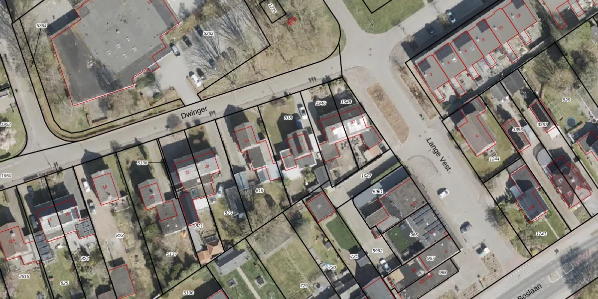 Het perceel waarop Dwinger 28 staat heeft een oppervlakte van 500 m². Dit is een groot perceel. De perceeloppervlakte wordt geregistreerd door het Kadaster. Gedetailleerde informatie over de maten van dit perceel kunt u vinden in het rapport Kadastrale kaart met maatvoering van Dwinger 28.