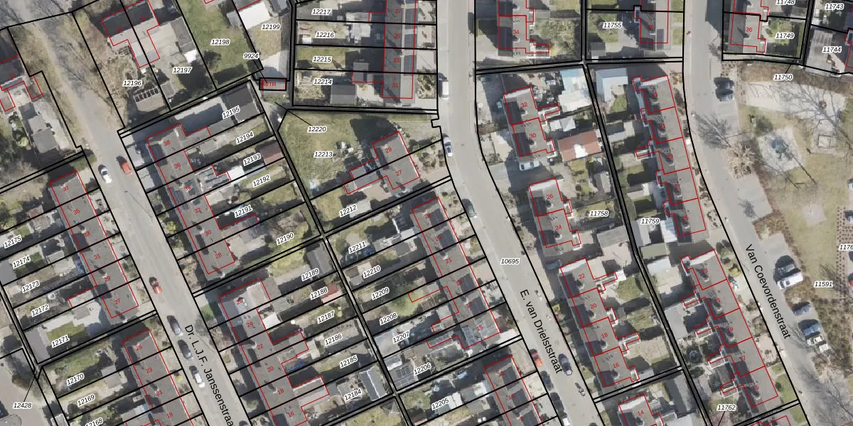 E. van Drielststraat 25 is gelegen op kadastraal perceel EMN00C12211. Deze kadastrale aanduiding is uniek en wordt gebruikt door het Kadaster om eigendomsrechten en andere zakelijke rechten vast te leggen. Het perceel maakt onderdeel uit van de kadastrale gemeente Emmen.