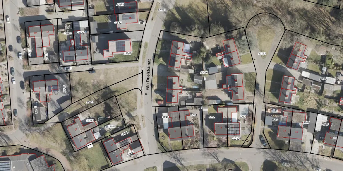 Het perceel waarop E. van Drielststraat 48 staat heeft een oppervlakte van 2410 m². Dit is een zeer groot perceel. De perceeloppervlakte wordt geregistreerd door het Kadaster. Gedetailleerde informatie over de maten van dit perceel kunt u vinden in het rapport Kadastrale kaart met maatvoering van E. van Drielststraat 48.