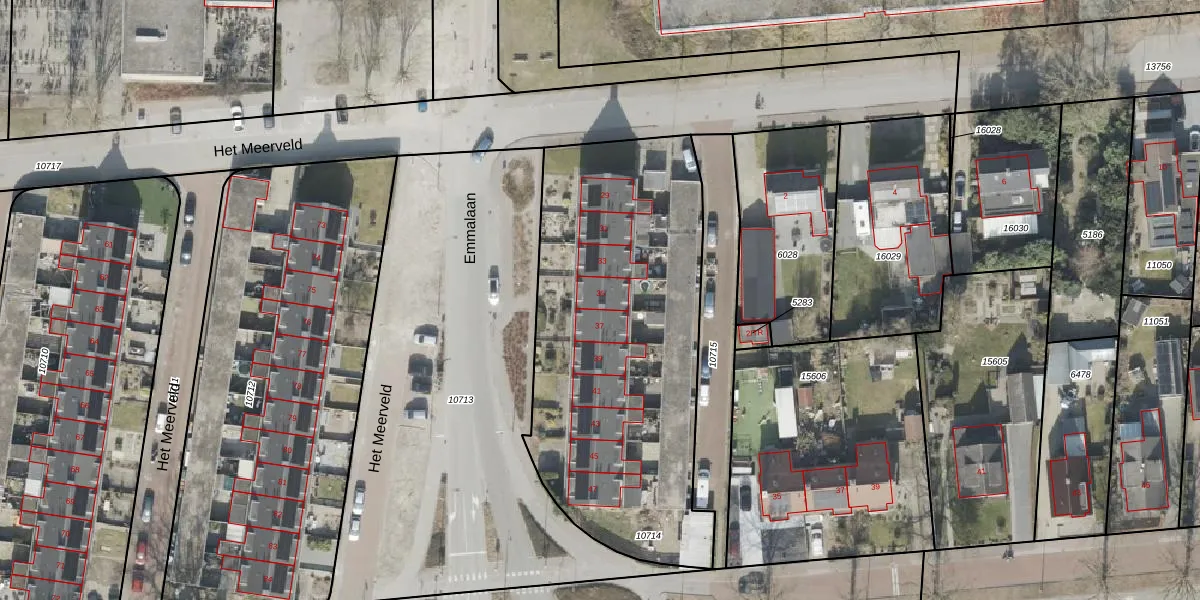 Het perceel waarop Emmalaan 35 staat heeft een oppervlakte van 1830 m². Dit is een zeer groot perceel. De perceeloppervlakte wordt geregistreerd door het Kadaster. Gedetailleerde informatie over de maten van dit perceel kunt u vinden in het rapport Kadastrale kaart met maatvoering van Emmalaan 35.