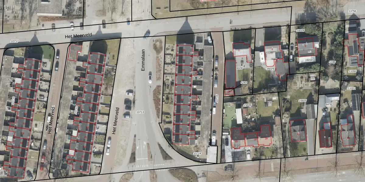 Het perceel waarop Emmalaan 37 staat heeft een oppervlakte van 1830 m². Dit is een zeer groot perceel. De perceeloppervlakte wordt geregistreerd door het Kadaster. Gedetailleerde informatie over de maten van dit perceel kunt u vinden in het rapport Kadastrale kaart met maatvoering van Emmalaan 37.