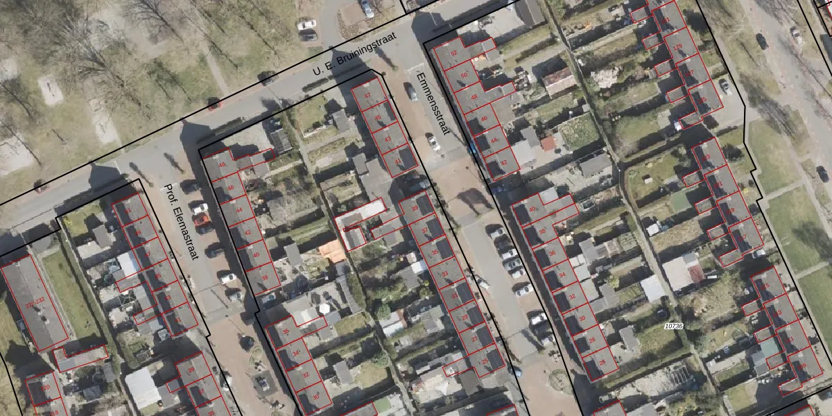 Het perceel waarop Emmensstraat 39 staat heeft een oppervlakte van 8004 m². Dit is een zeer groot perceel. De perceeloppervlakte wordt geregistreerd door het Kadaster. Gedetailleerde informatie over de maten van dit perceel kunt u vinden in het rapport Kadastrale kaart met maatvoering van Emmensstraat 39.