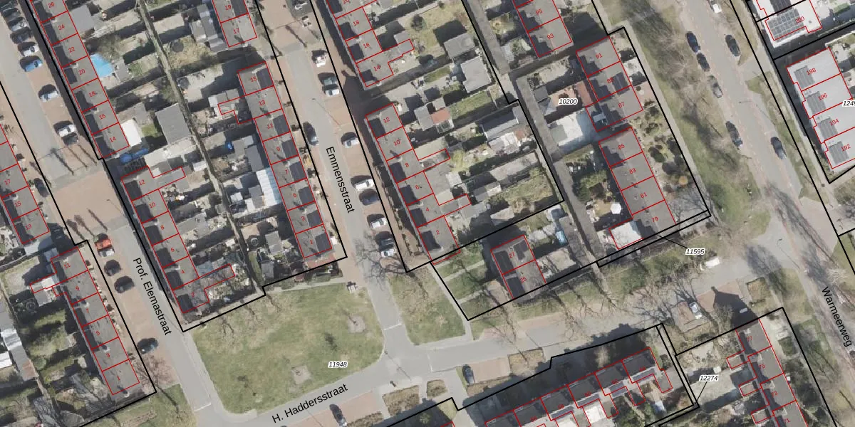Het perceel waarop Emmensstraat 4 staat heeft een oppervlakte van 9251 m². Dit is een zeer groot perceel. De perceeloppervlakte wordt geregistreerd door het Kadaster. Gedetailleerde informatie over de maten van dit perceel kunt u vinden in het rapport Kadastrale kaart met maatvoering van Emmensstraat 4.