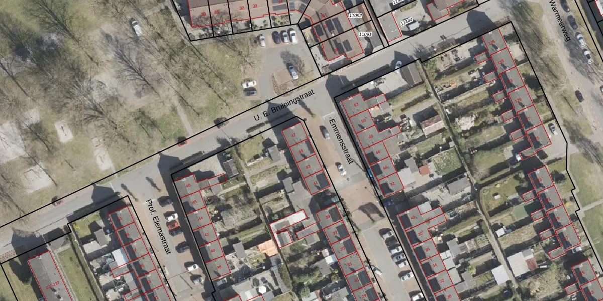 Het perceel waarop Emmensstraat 45 staat heeft een oppervlakte van 8004 m². Dit is een zeer groot perceel. De perceeloppervlakte wordt geregistreerd door het Kadaster. Gedetailleerde informatie over de maten van dit perceel kunt u vinden in het rapport Kadastrale kaart met maatvoering van Emmensstraat 45.