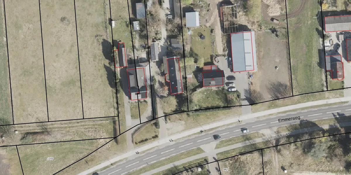 Het perceel waarop Emmerweg 29 staat heeft een oppervlakte van 2025 m². Dit is een zeer groot perceel. De perceeloppervlakte wordt geregistreerd door het Kadaster. Gedetailleerde informatie over de maten van dit perceel kunt u vinden in het rapport Kadastrale kaart met maatvoering van Emmerweg 29.