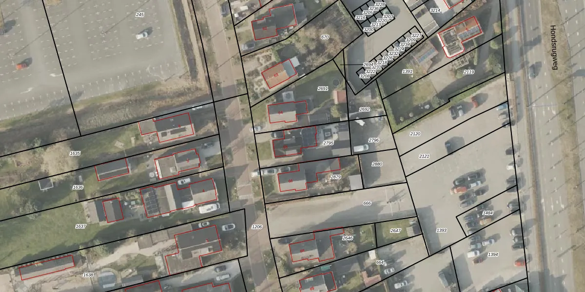 Het perceel waarop Esweg 65 staat heeft een oppervlakte van 388 m². Dit is een groot perceel. De perceeloppervlakte wordt geregistreerd door het Kadaster. Gedetailleerde informatie over de maten van dit perceel kunt u vinden in het rapport Kadastrale kaart met maatvoering van Esweg 65.