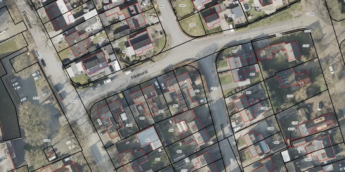 Gebruik de zoekbalk of klik op een perceel voor informatie over de adressen binnen dit perceel.