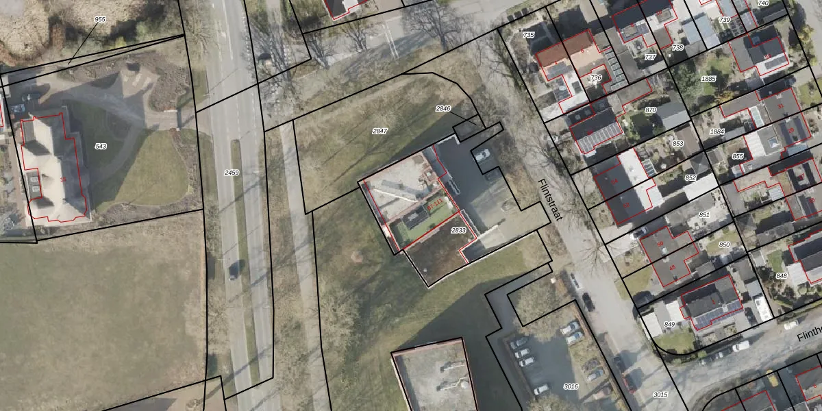Het perceel waarop Flintstraat 105 staat heeft een oppervlakte van 950 m². Dit is een groot perceel. De perceeloppervlakte wordt geregistreerd door het Kadaster. Gedetailleerde informatie over de maten van dit perceel kunt u vinden in het rapport Kadastrale kaart met maatvoering van Flintstraat 105.