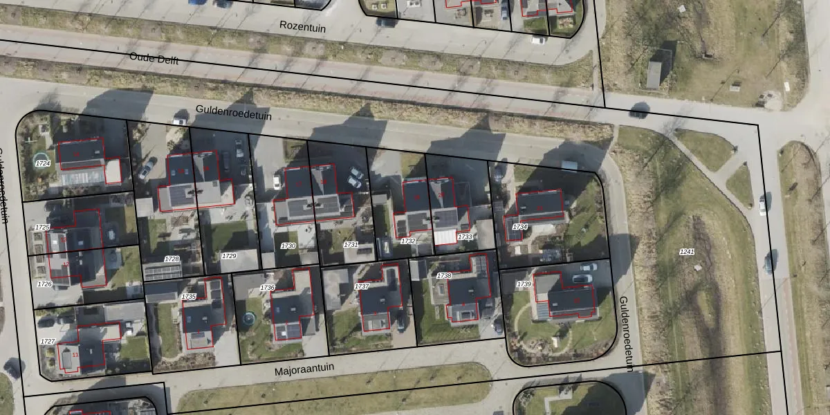 Het perceel waarop Guldenroedetuin 19 staat heeft een oppervlakte van 364 m². Dit is een groot perceel. De perceeloppervlakte wordt geregistreerd door het Kadaster. Gedetailleerde informatie over de maten van dit perceel kunt u vinden in het rapport Kadastrale kaart met maatvoering van Guldenroedetuin 19.
