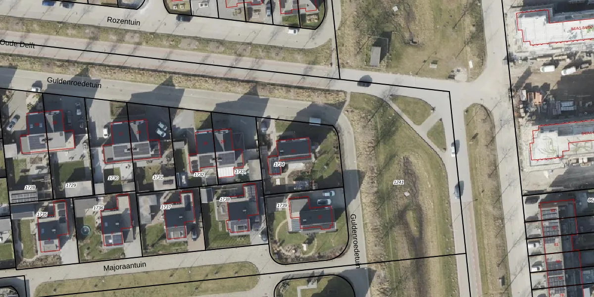 Het perceel waarop Guldenroedetuin 21 staat heeft een oppervlakte van 631 m². Dit is een groot perceel. De perceeloppervlakte wordt geregistreerd door het Kadaster. Gedetailleerde informatie over de maten van dit perceel kunt u vinden in het rapport Kadastrale kaart met maatvoering van Guldenroedetuin 21.