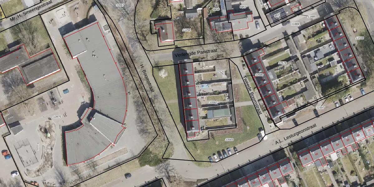 Het perceel waarop H. Boomstraat 4 staat heeft een oppervlakte van 1070 m². Dit is een zeer groot perceel. De perceeloppervlakte wordt geregistreerd door het Kadaster. Gedetailleerde informatie over de maten van dit perceel kunt u vinden in het rapport Kadastrale kaart met maatvoering van H. Boomstraat 4.