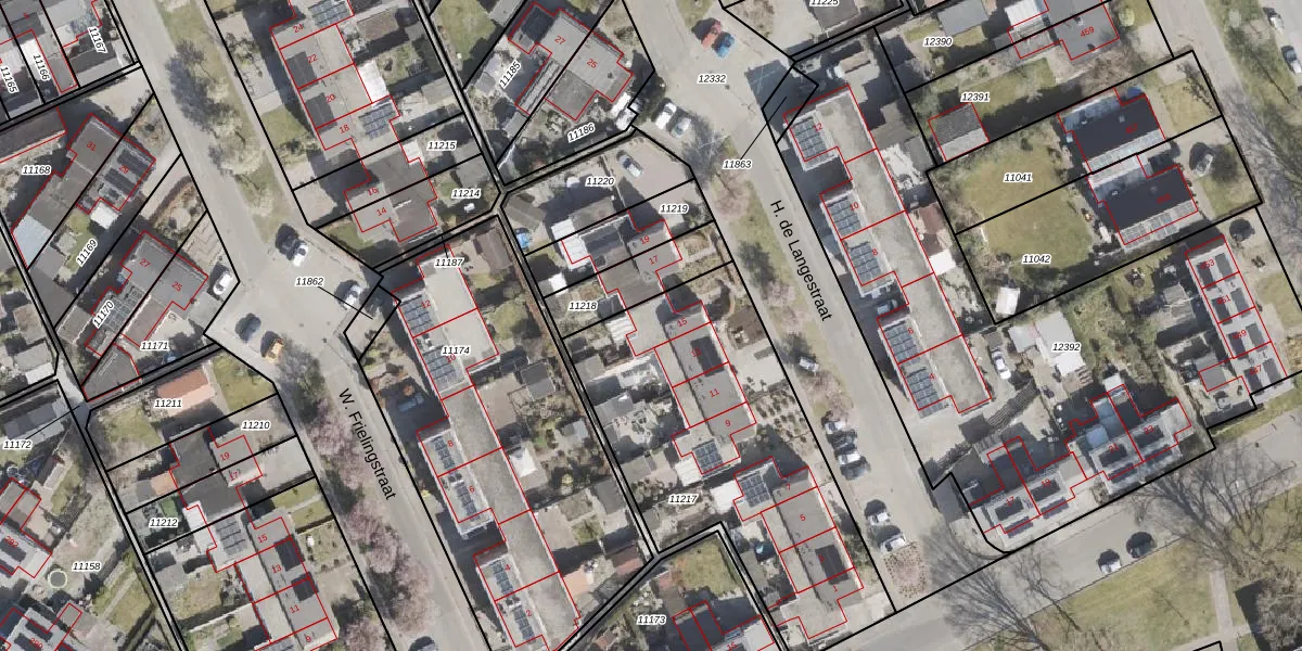 Het perceel waarop H. de Langestraat 15 staat heeft een oppervlakte van 1480 m². Dit is een zeer groot perceel. De perceeloppervlakte wordt geregistreerd door het Kadaster. Gedetailleerde informatie over de maten van dit perceel kunt u vinden in het rapport Kadastrale kaart met maatvoering van H. de Langestraat 15.