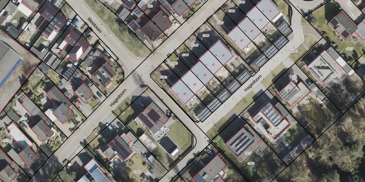 Het perceel waarop Hagedoorn 56 staat heeft een oppervlakte van 406 m². Dit is een groot perceel. De perceeloppervlakte wordt geregistreerd door het Kadaster. Gedetailleerde informatie over de maten van dit perceel kunt u vinden in het rapport Kadastrale kaart met maatvoering van Hagedoorn 56.
