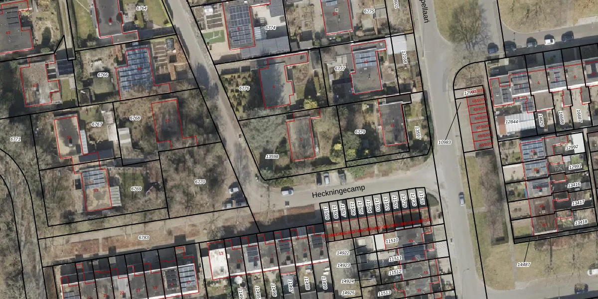 Het perceel waarop Heckningecamp 2 staat heeft een oppervlakte van 654 m². Dit is een groot perceel. De perceeloppervlakte wordt geregistreerd door het Kadaster. Gedetailleerde informatie over de maten van dit perceel kunt u vinden in het rapport Kadastrale kaart met maatvoering van Heckningecamp 2.