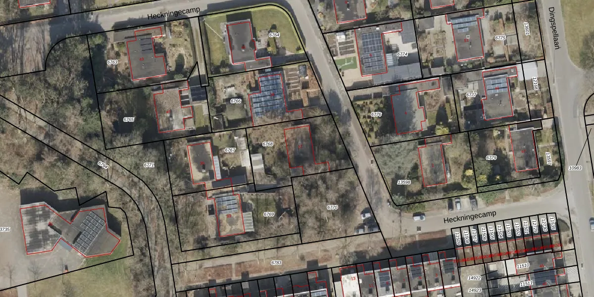Gebruik de zoekbalk of klik op een perceel voor informatie over de adressen binnen dit perceel.