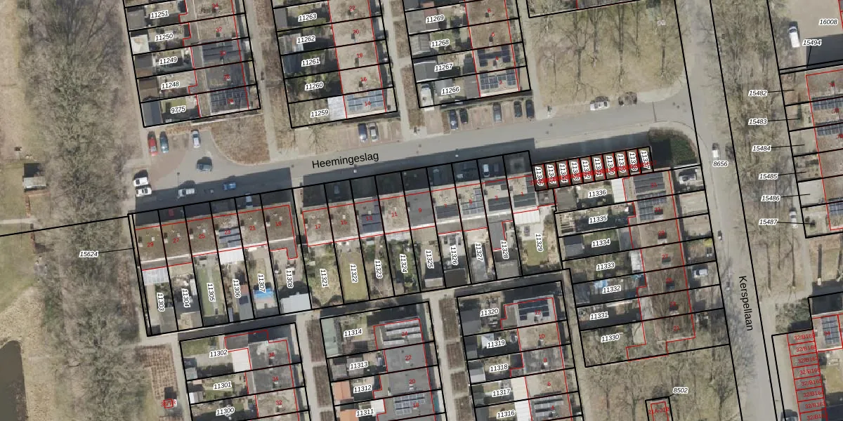 Heemingeslag 9 is gelegen op kadastraal perceel EMN00F11325. Deze kadastrale aanduiding is uniek en wordt gebruikt door het Kadaster om eigendomsrechten en andere zakelijke rechten vast te leggen. Het perceel maakt onderdeel uit van de kadastrale gemeente Emmen.