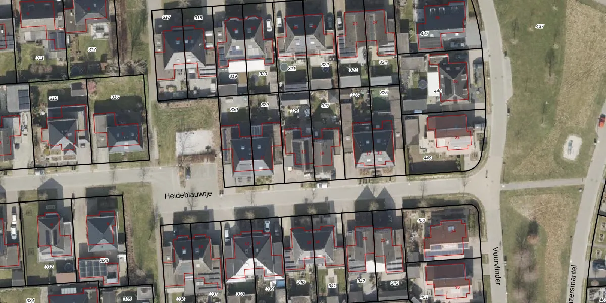 Gebruik de zoekbalk of klik op een perceel voor informatie over de adressen binnen dit perceel.