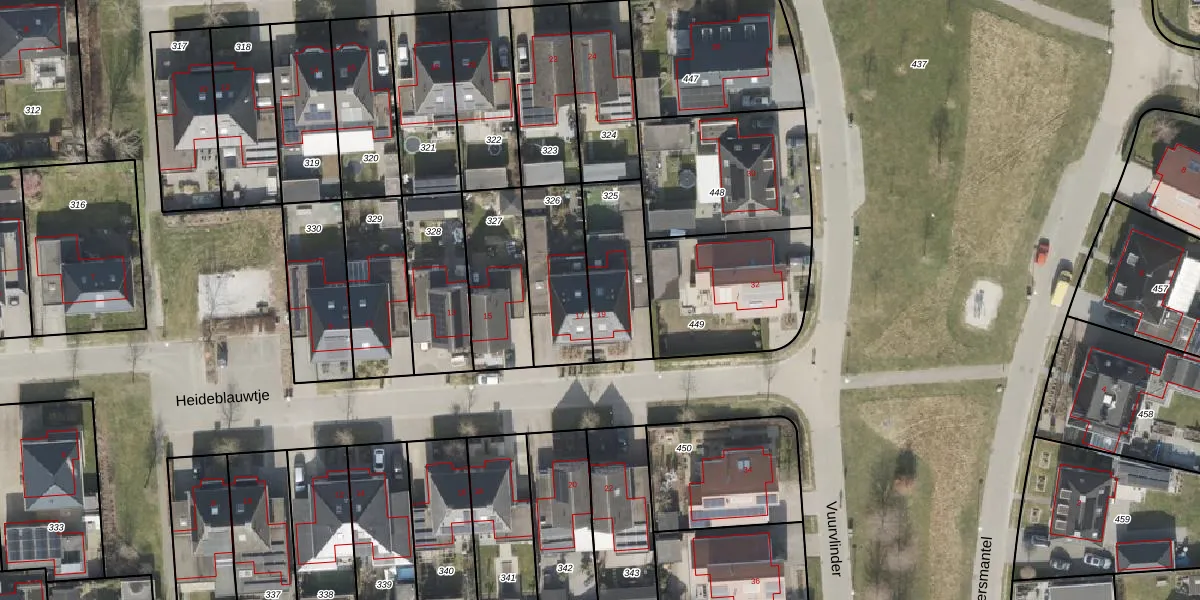 Het perceel waarop Heideblauwtje 19 staat heeft een oppervlakte van 300 m². Dit is een groot perceel. De perceeloppervlakte wordt geregistreerd door het Kadaster. Gedetailleerde informatie over de maten van dit perceel kunt u vinden in het rapport Kadastrale kaart met maatvoering van Heideblauwtje 19.