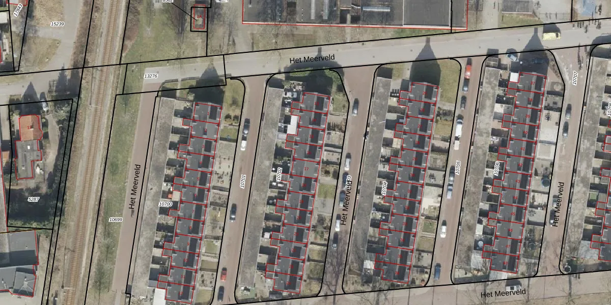 Het Meerveld 16 is gelegen op kadastraal perceel EMN00F10702. Deze kadastrale aanduiding is uniek en wordt gebruikt door het Kadaster om eigendomsrechten en andere zakelijke rechten vast te leggen. Het perceel maakt onderdeel uit van de kadastrale gemeente Emmen.