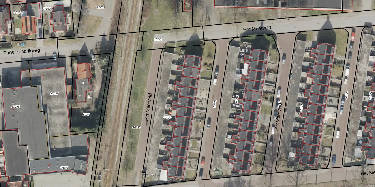Het perceel waarop Het Meerveld 4 staat heeft een oppervlakte van 2110 m². Dit is een zeer groot perceel. De perceeloppervlakte wordt geregistreerd door het Kadaster. Gedetailleerde informatie over de maten van dit perceel kunt u vinden in het rapport Kadastrale kaart met maatvoering van Het Meerveld 4.