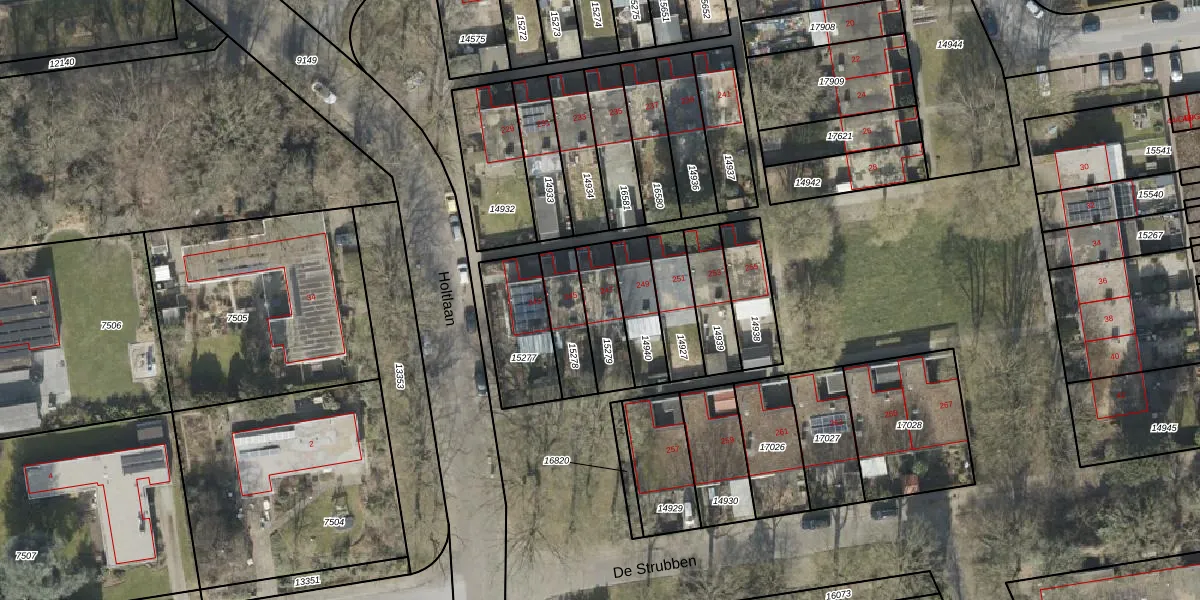 Gebruik de zoekbalk of klik op een perceel voor informatie over de adressen binnen dit perceel.