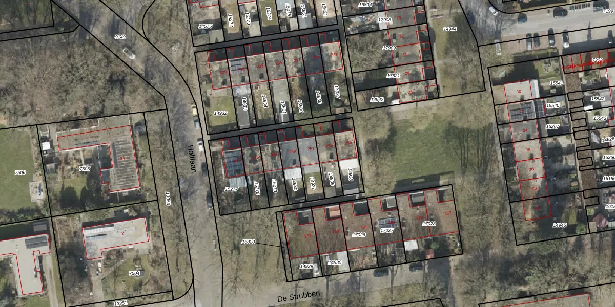 Gebruik de zoekbalk of klik op een perceel voor informatie over de adressen binnen dit perceel.